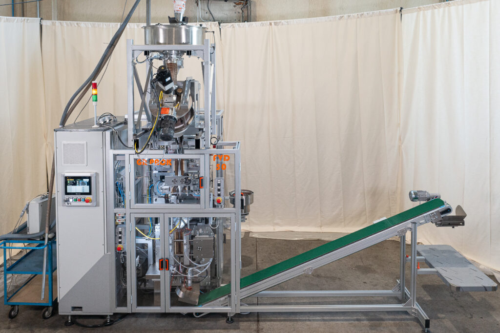 Filter paper bag forming machine for drip coffee in various sizes and dosages.